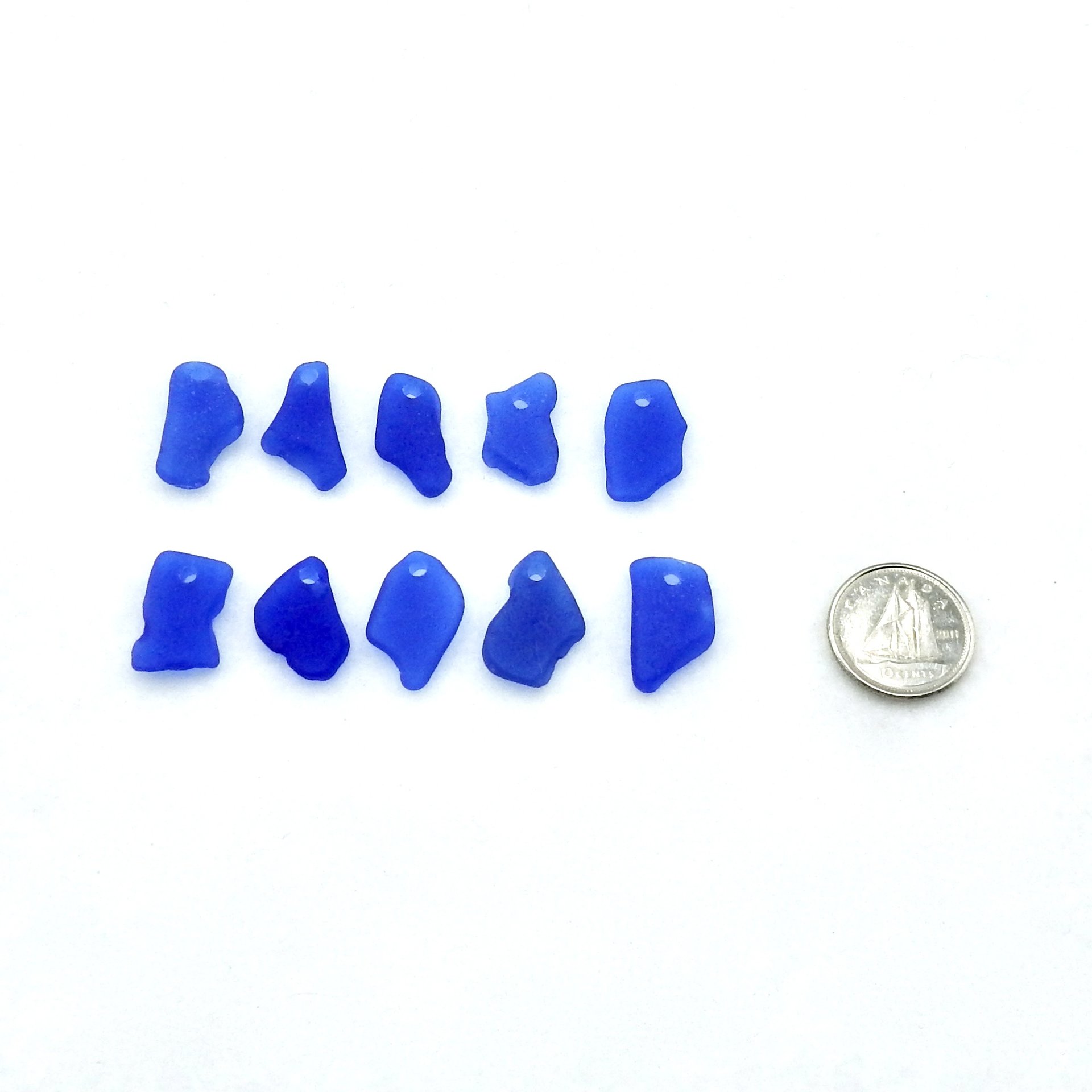 Genuine sea glass pendants and charms in odd and unusual shapes, set of 10 cobalt blue for jewelry making or other crafts.