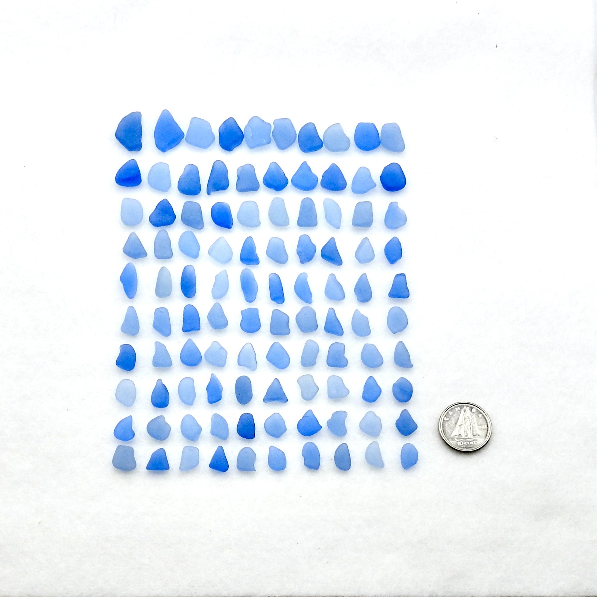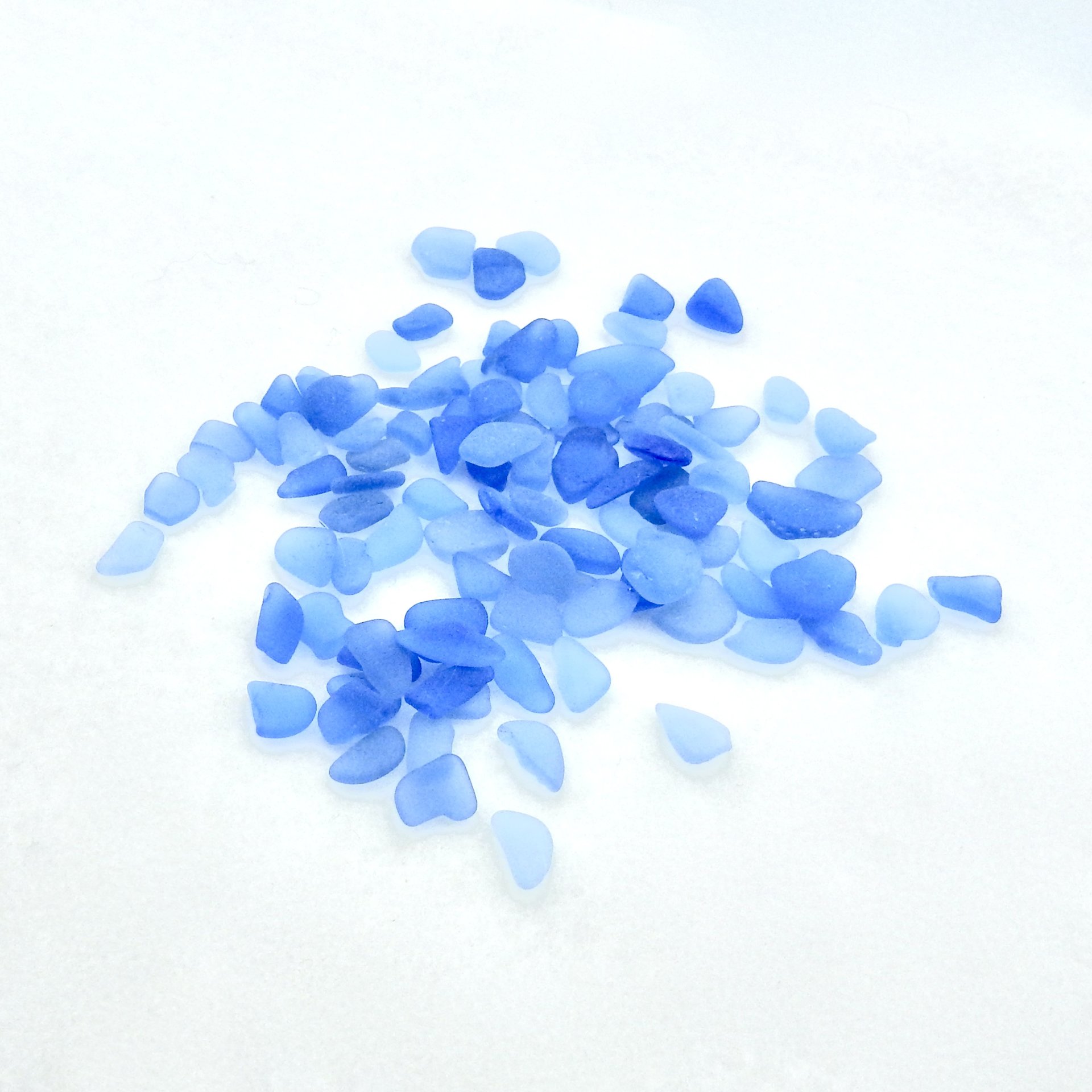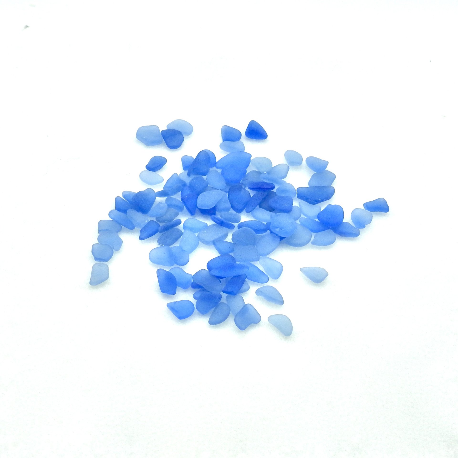 Genuine sea glass, set of 100 tiny to small good pieces in shades of cobalt blue for jewelry making, mosaics, art work, greeting cards or other beach themed crafts.