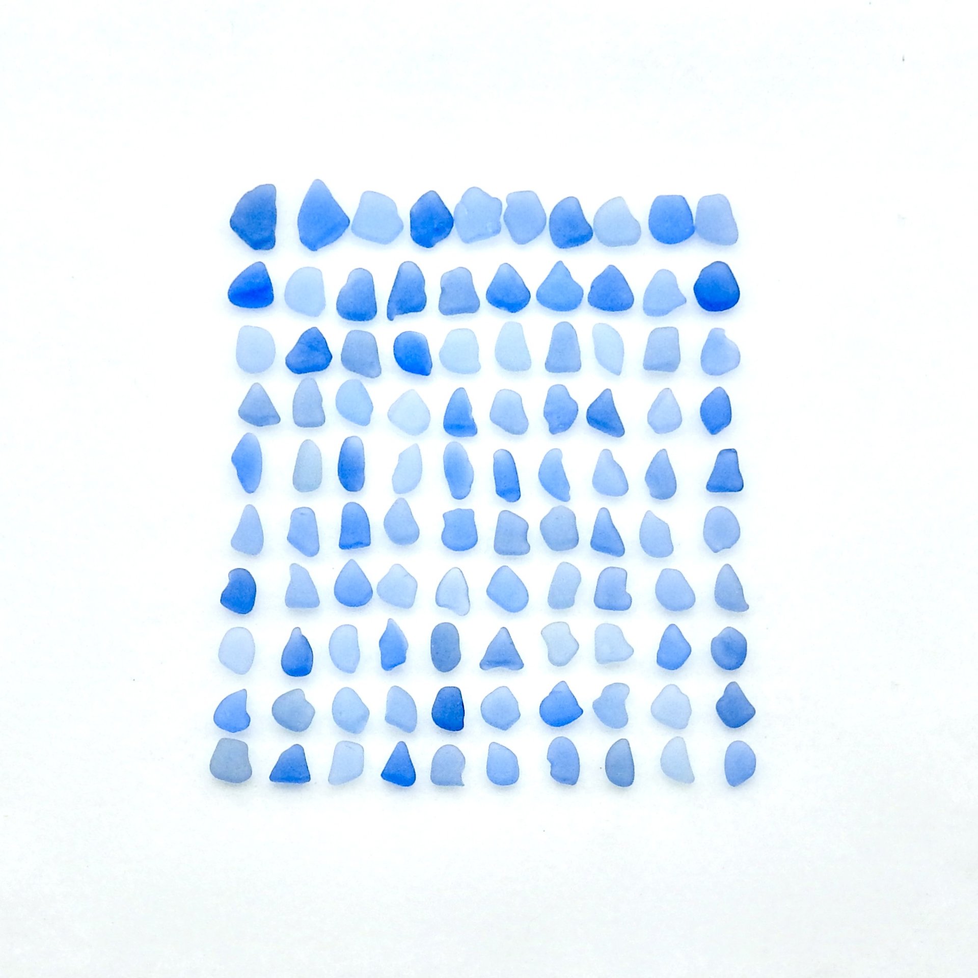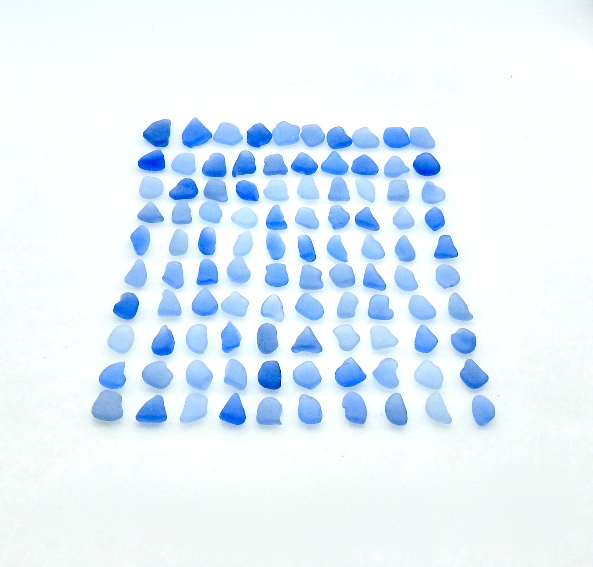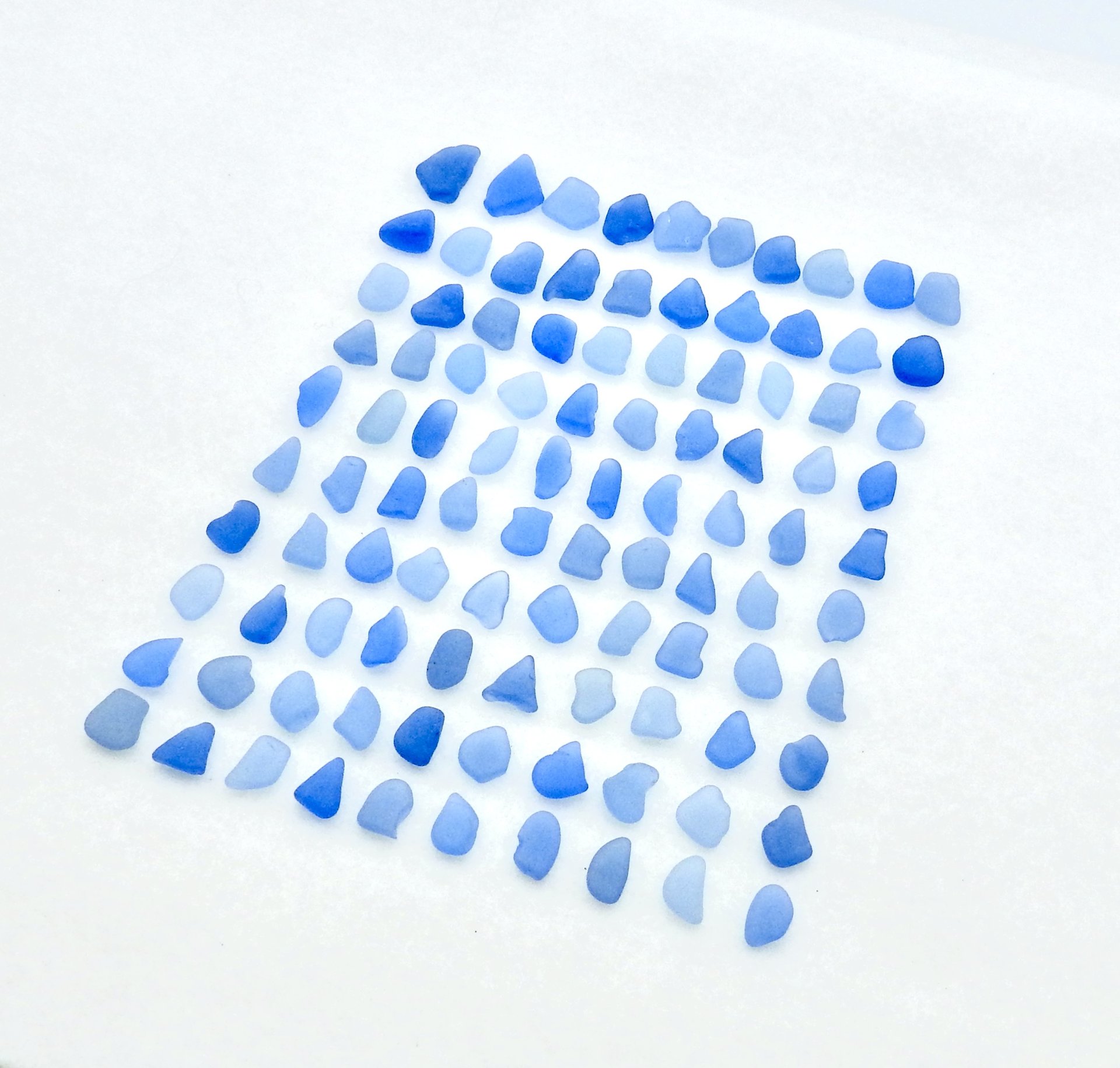 Genuine sea glass, set of 100 tiny to small good pieces in shades of cobalt blue for jewelry making, mosaics, art work, greeting cards or other beach themed crafts.