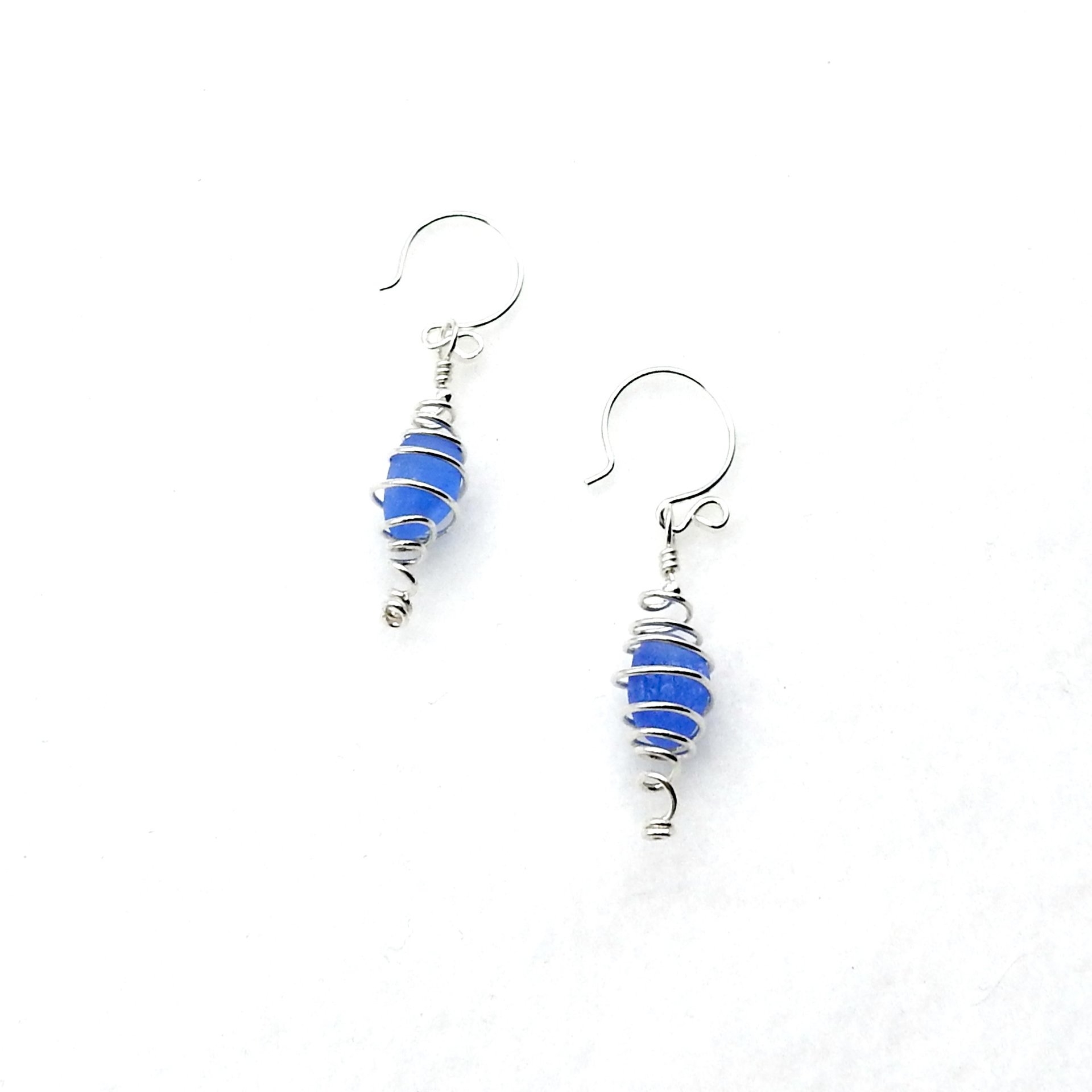 Real Beach Glass Earrings Cornflower Blue Silver Spiral Jewelry