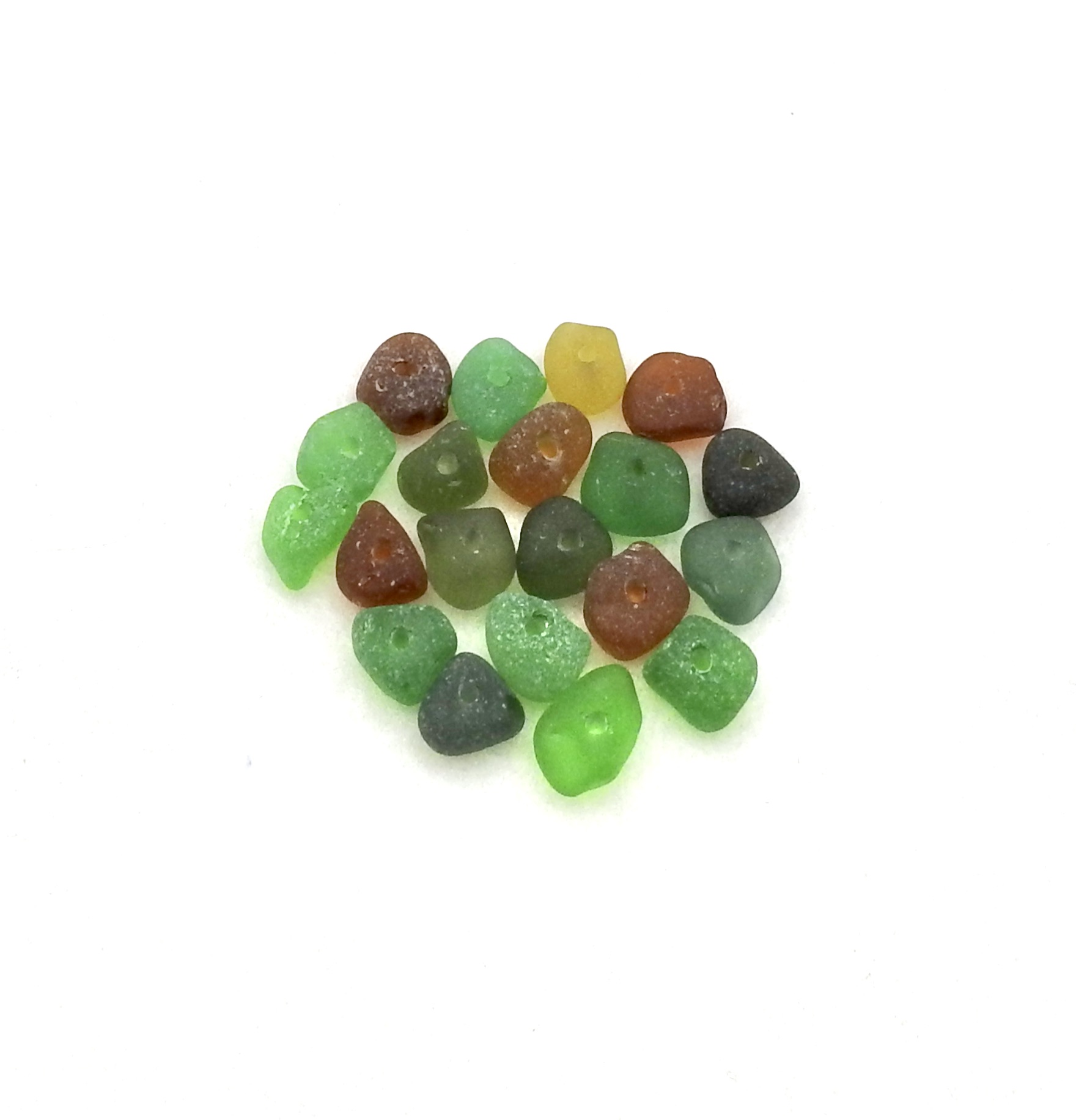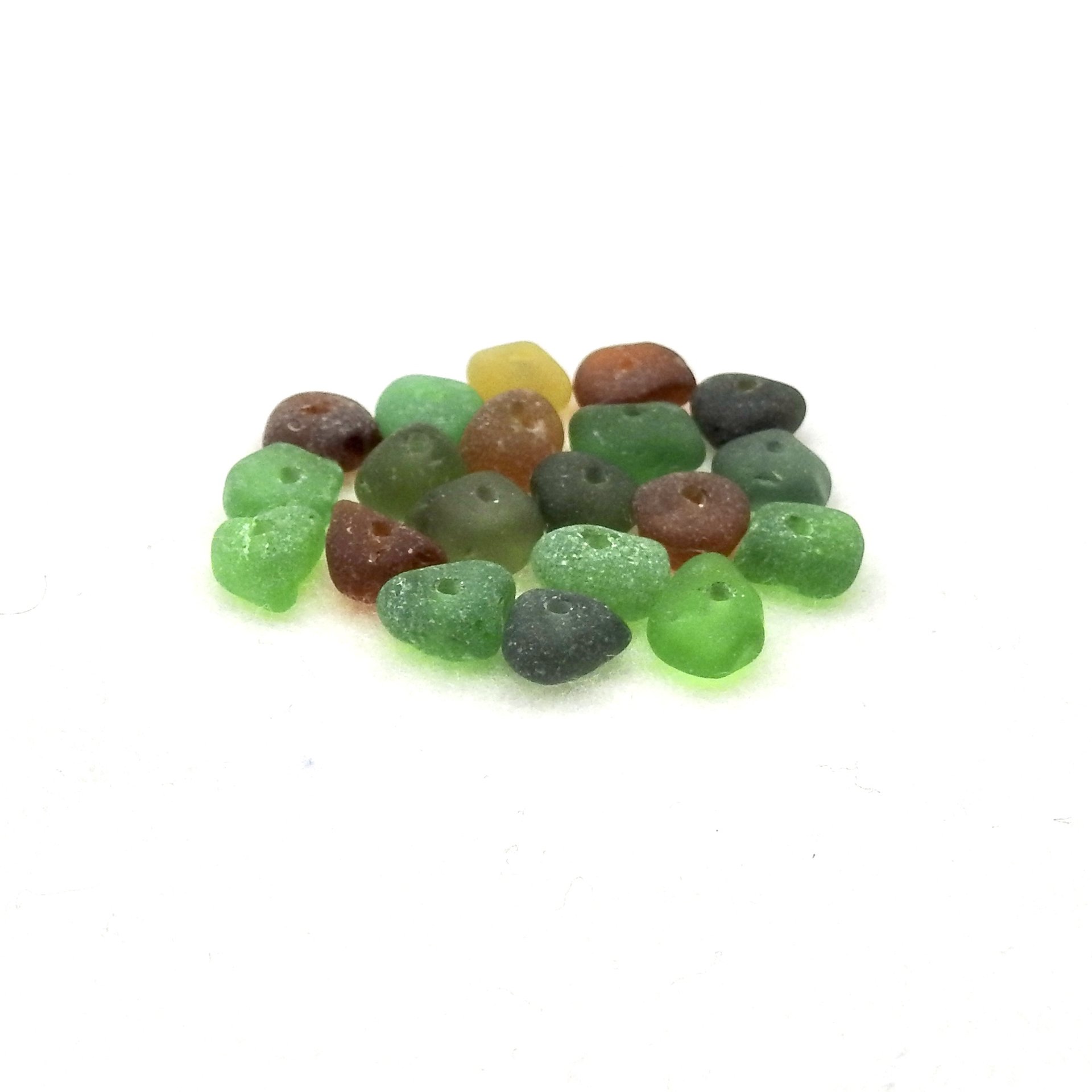 Genuine sea glass beads with center drilled holes, set of 20, in assorted colours for jewelry making or other beach themed crafts.