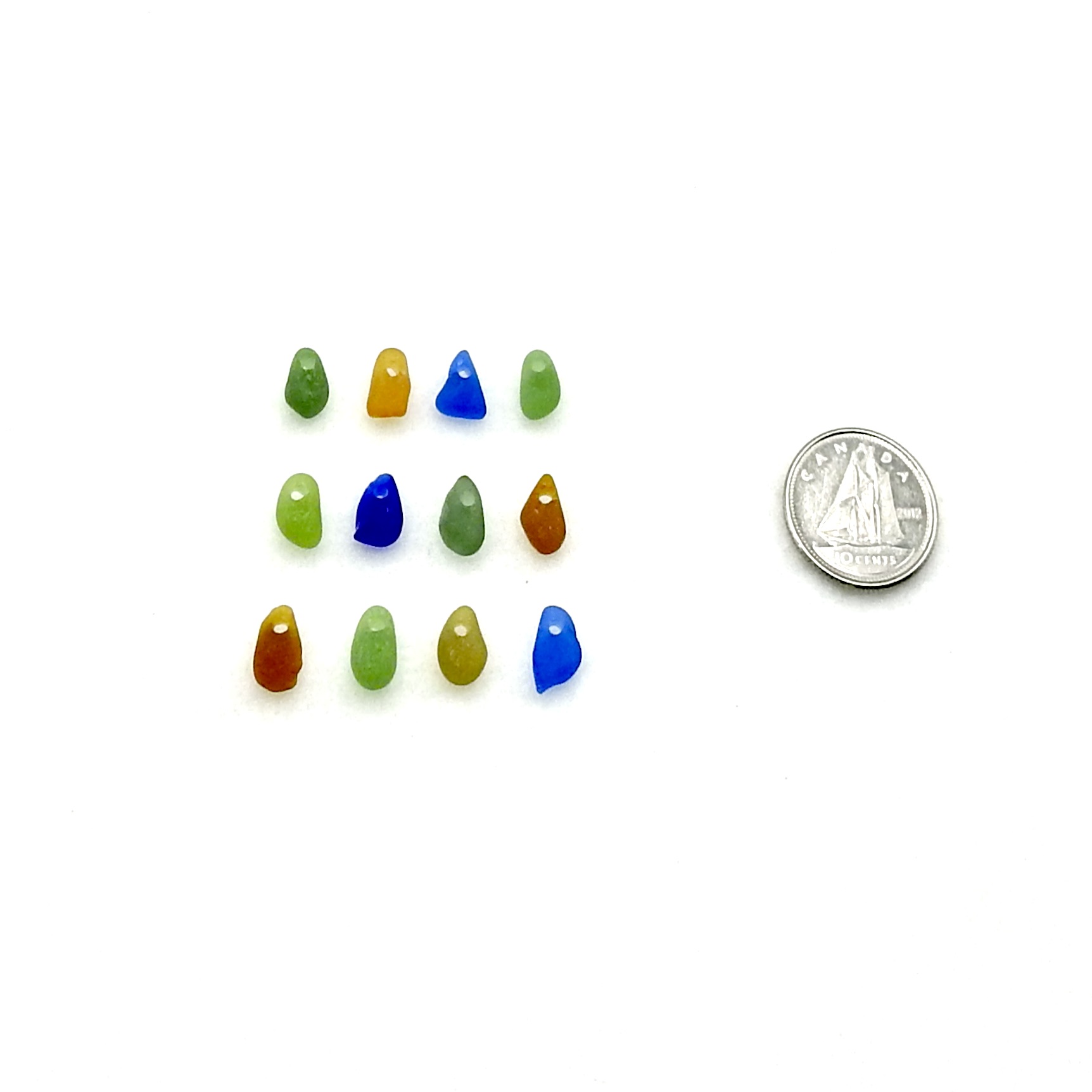 Very tiny genuine sea glass beads, set of 12, with top drilled holes for jewelry making, sew on decoration or other beach themed crafts.